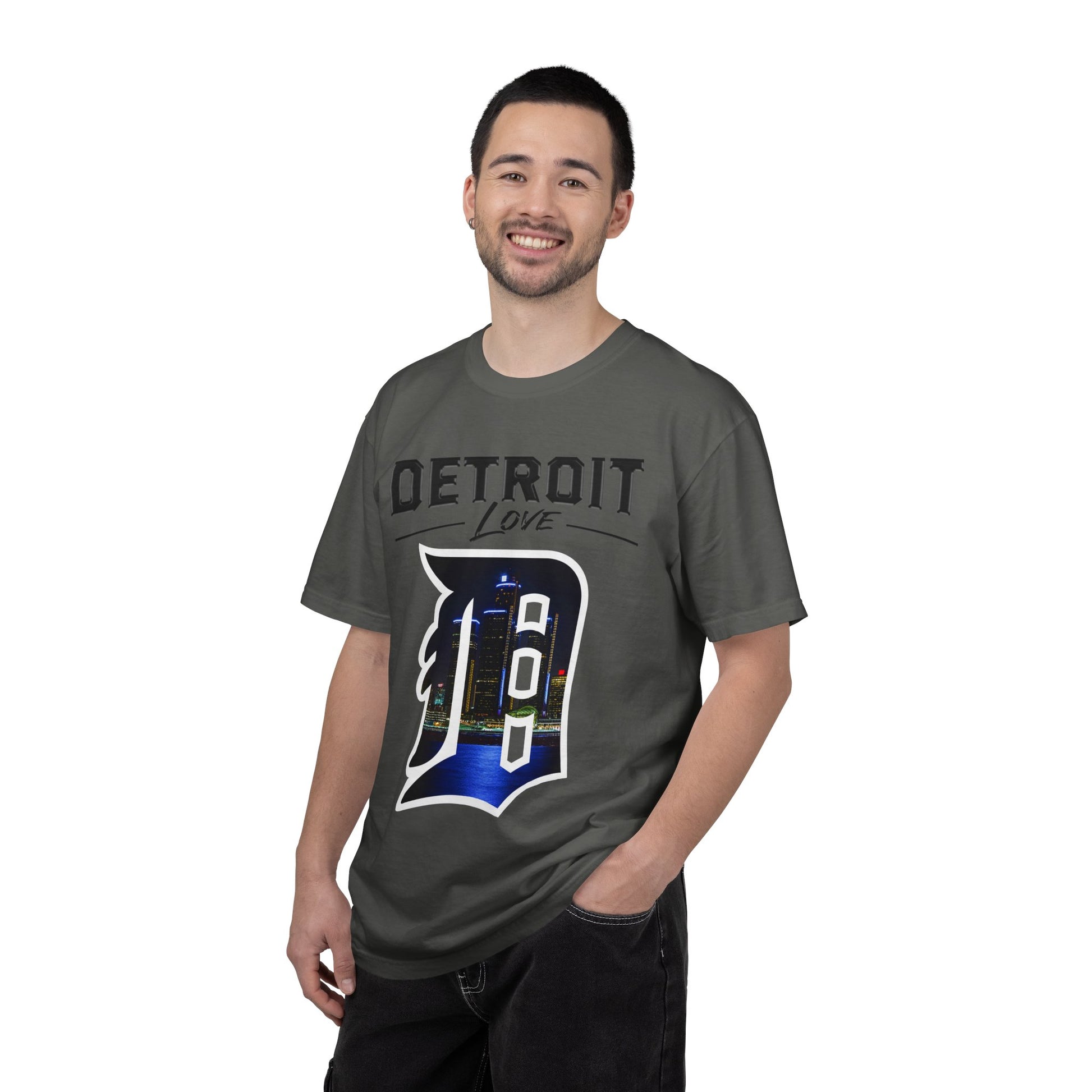 Soft, lived-in tee that carries hometown pride without shouting. The heavyweight, garment-dyed cotton settles into your shoulders and softens with every wash, while the bold Detroit graphic frames a night-sky cityscape inside a classic Old English “D.” It sits relaxed and easy — the kind of shirt you grab for late drives across town, rooftop hangs, or a low-key night out. The sewn-in label and double-needle seams mean it holds shape through repeat wear. Available in a wide palette of tones so the graphic can feel subtle or stand out, this shirt becomes part of your regular rotation and your quiet way of saying you belong to this city.